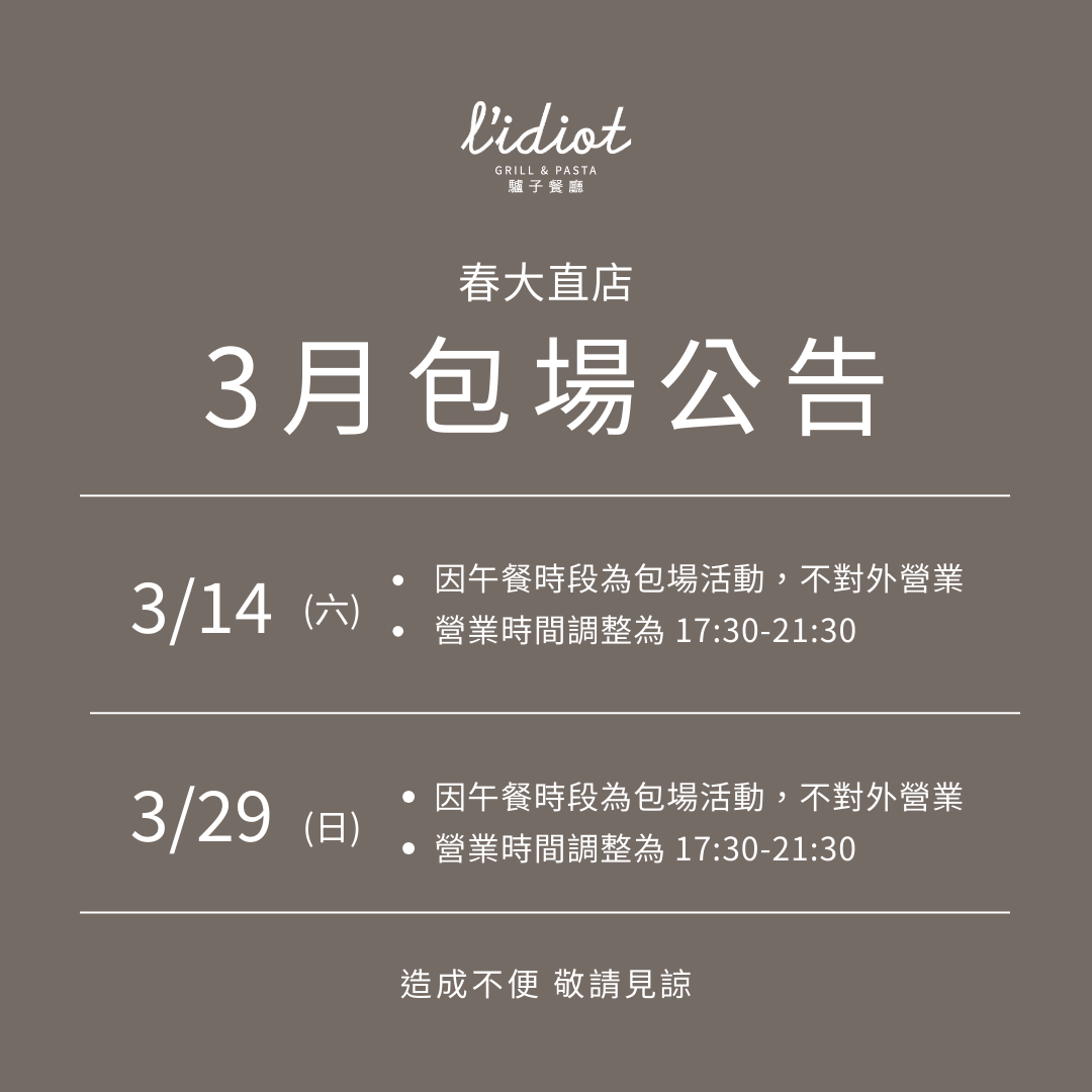 【春大直店】3月包場公告